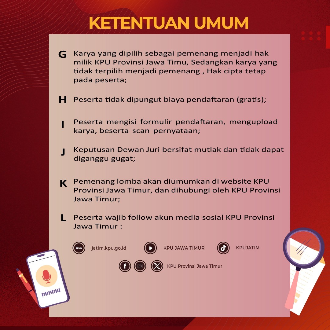 Kompetisi Jurnalistik Kamis, 18 Juli 2024 22:00 68 Kompetisi Jurnalistik ketentuan ketentuan lanjutan Bagikan: Telah dilihat 68 kali