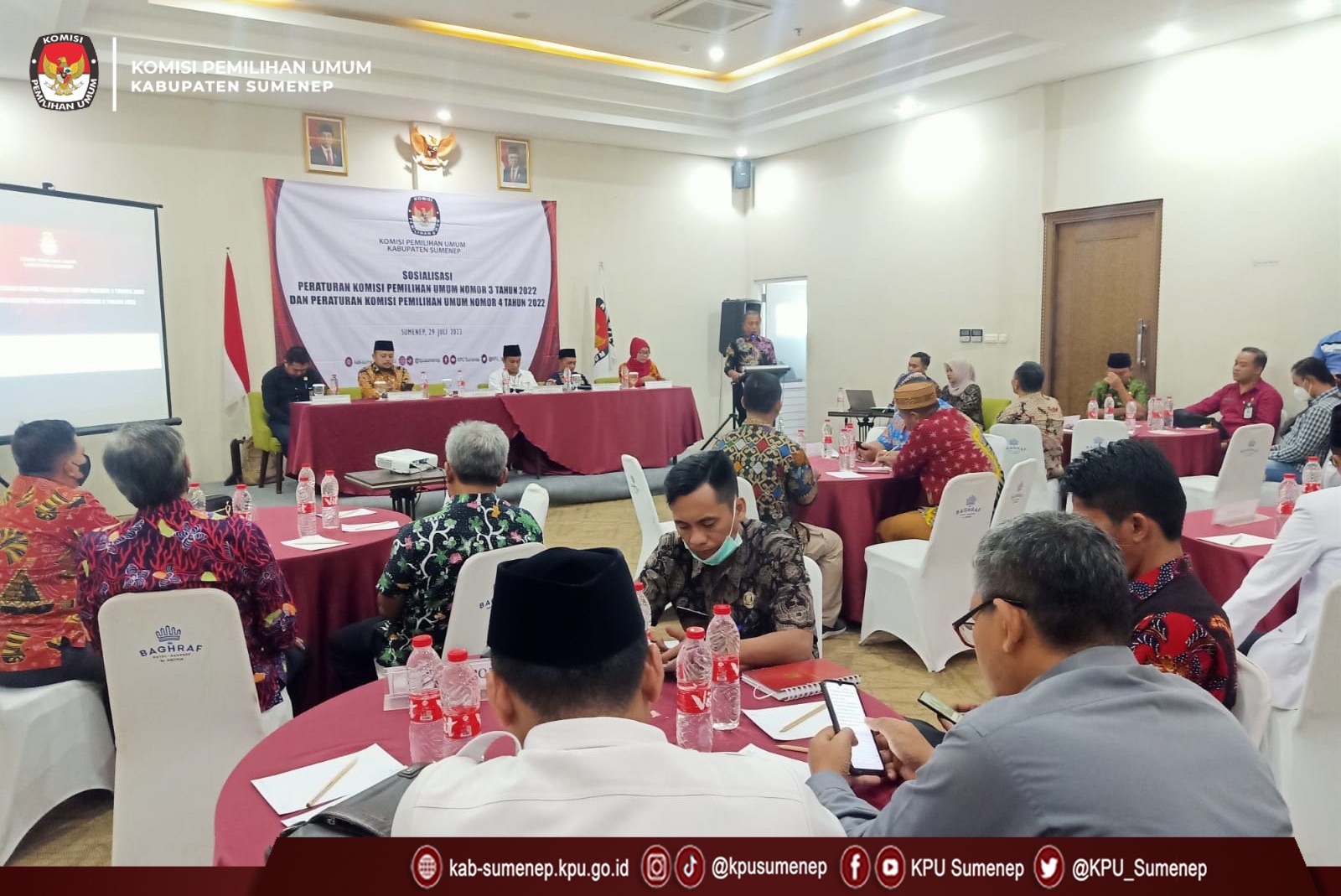 KPU KABUPATEN SUMENEP SOSIALISASIKAN PERATURAN KPU NOMOR 3 TAHUN 2022 DAN PERATURAN KPU NOMOR 4 TAHUN 2022 KEPADA PARPOL CALON PESERTA PEMILU DAN STAKE HOLDER