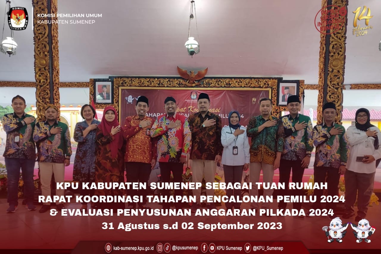 KPU Provinsi Laksanakan Rapat Koordinasi Tahapan Pencalonan Pemilu Tahun 2024 Dan Evaluasi Penyusunan Anggaran Pilkada 2024, KPU Kabupaten Sumenep Bertindak Sebagai Tuan Rumah
