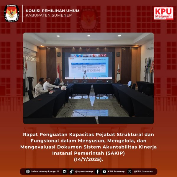 Sumenep,kab-sumenep.kpu.go.id. Komisi Pemilihan Umum (KPU) Kabupaten Sumenep mengikuti Rapat Penguatan Kapasitas Pejabat Struktural dan Fungsional dalam Menyusun, Mengelola, dan Mengevaluasi Dokumen Sistem Akuntabilitas Kinerja Instansi Pemerintah (SAKIP) Tahun 2025 secara Daring melalui Zoom. Senin (14 Juli 2025).