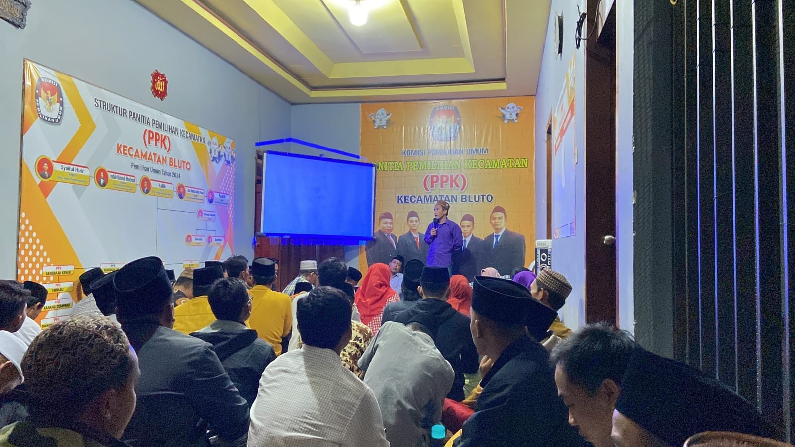 "Ini merupakan kegiatan perdana kami yang dilaksanakan oleh Panitia Pemilihan Kecamatan (PPK) tentunya dibantu oleh sekretariat PPK dengan seluruh anggota Panitia Pemungutan Suara (PPS) se-Kecamatan Bluto yang berjumlah 60 orang,” jelas Halik Ketua PPK Bluto.