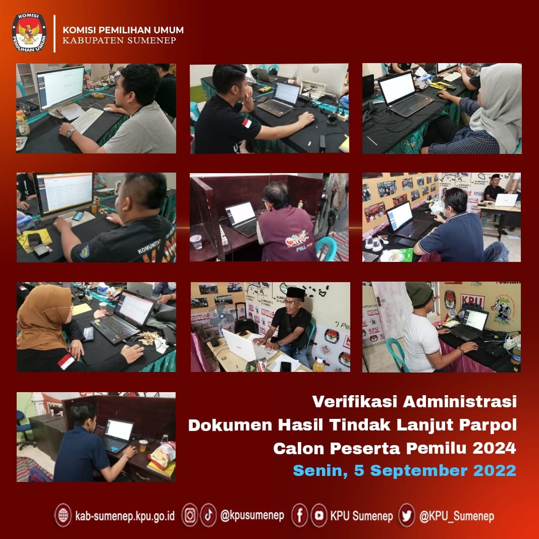Sumenep, kab-sumenep.kpu.go.id - Pasca masa unggah dokumen hasil tindaklanjut Partai Politik melalui SIPOL diperpanjang hingga tanggal 4 September 2022, dini hari tadi (senin, 05/09/2022) pukul 00.00 WIB, petugas verifikasi melakukan pengecekan kembali dokumen pembuktian anggota yang diduga ganda dan berpotensi tidak memenuhi syarat (TMS) melalui SIPOL.
