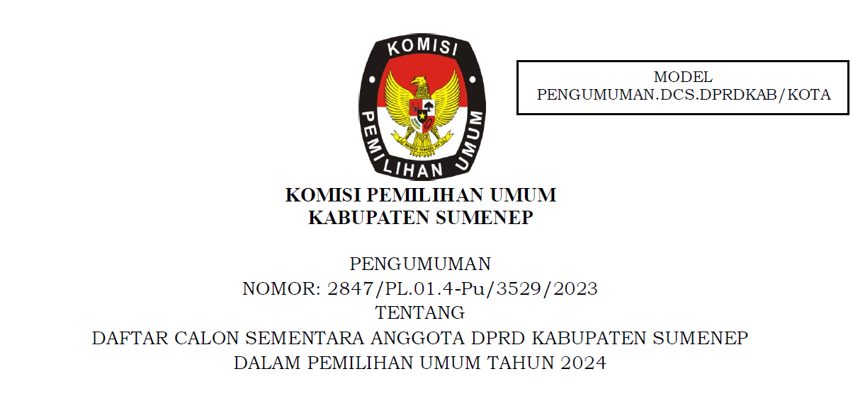 Pengumuman Daftar Calon Sementara Anggota DPRD Kabupaten Sumenep Dalam Pemilu Tahun 2024