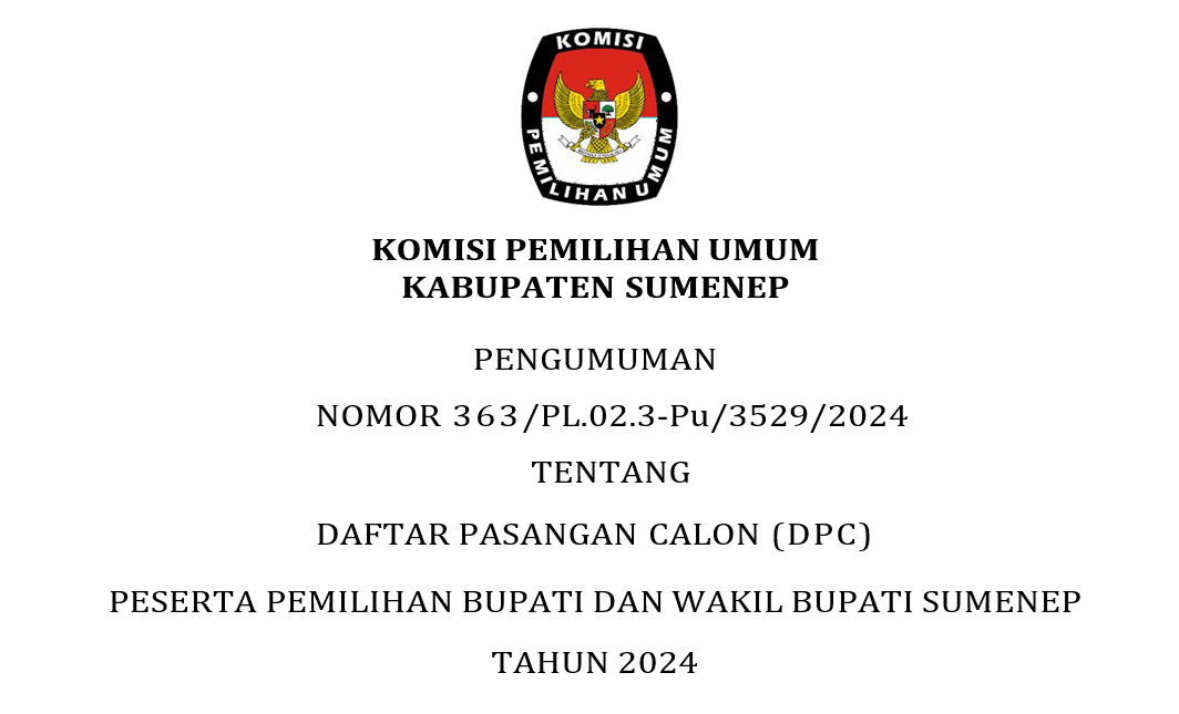 PENGUMUMAN DAFTAR PASANGAN CALON PESERTA PEMILIHAN BUPATI DAN WAKIL BUPATI SUMENEP TAHUN 2024
