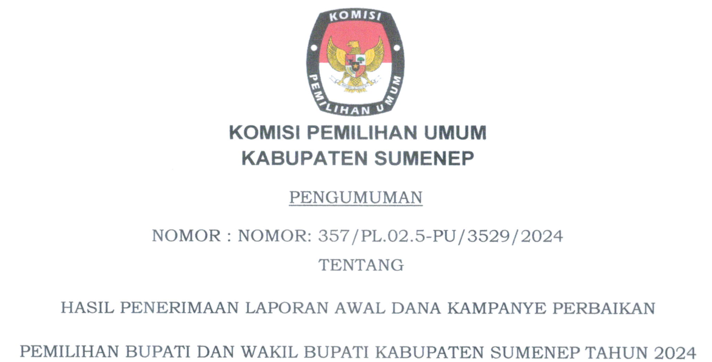 Pengumuman Hasil Penerimaan Laporan Awal Dana Kampanye Perbaikan Pemilihan Bupati dan Wakil Bupati Sumenep Tahun 2024.pdf