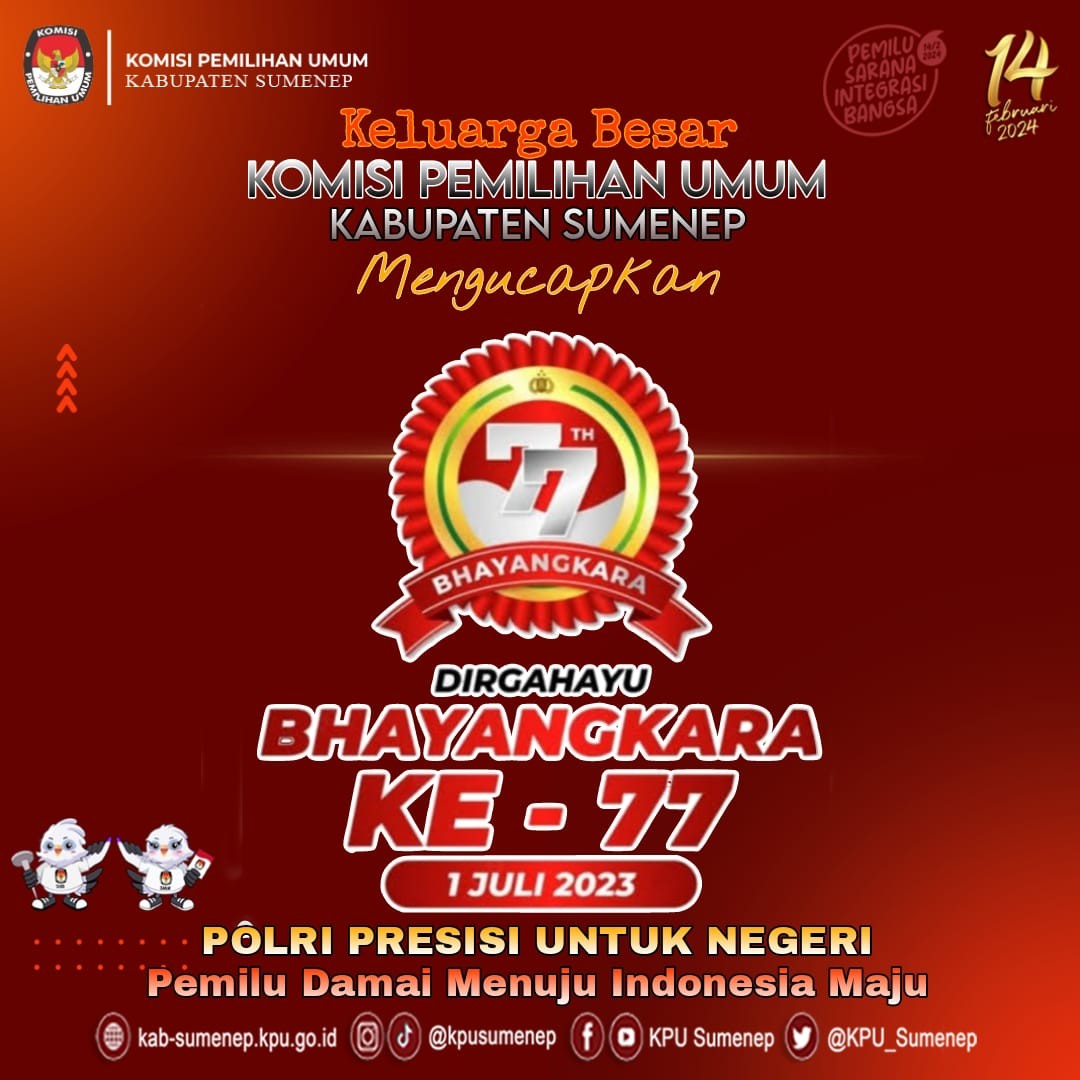 Sumenep,kab-sumenep.kpu.go.id-. Ketua Komisi Pemilihan Umum (KPU) Kabupaten Sumenep menghadiri dan mengikuti undangan dalam rangka memperingati hari Bhayangkara ke 77 yang jatuh pada tanggal 1 juli 2023. Pelaksanaan peringatan hari Bhayangkara di Kabupaten Sumenep di laksanakan di lapangan upacara kantor Pemerintah Daerah atau di lapangan kantor Bupati Sumenep, Jl. Dr. Cipto. Sabtu, (1 Juli 2023).