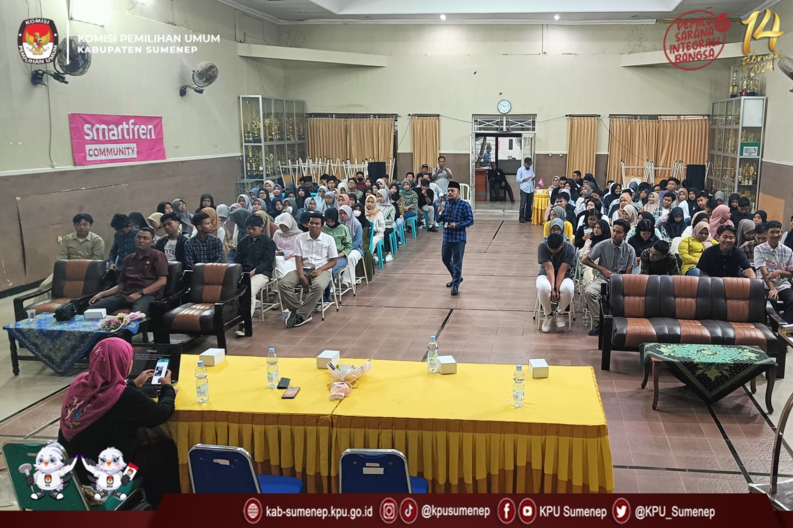 Sumenep,kab-sumenep.kpu.go.id-. Memenuhi undangan dari salah satu provider komunikasi yang bekerja sama dengan SMA Negeri 1 Sumenep, Rafiqi, Komisioner Komisi Pemilihan Umum (KPU) Kabupaten Sumenep Divisi SDM dan Parmas menjadi salah satu pemateri dalam acara Teman Pintar Smartfrend Community Sumenep dengan mengambil tema "Peran Pemilih Pemula Dalam Pesta Demokrasi". Sabtu, 22 Juli 2023.