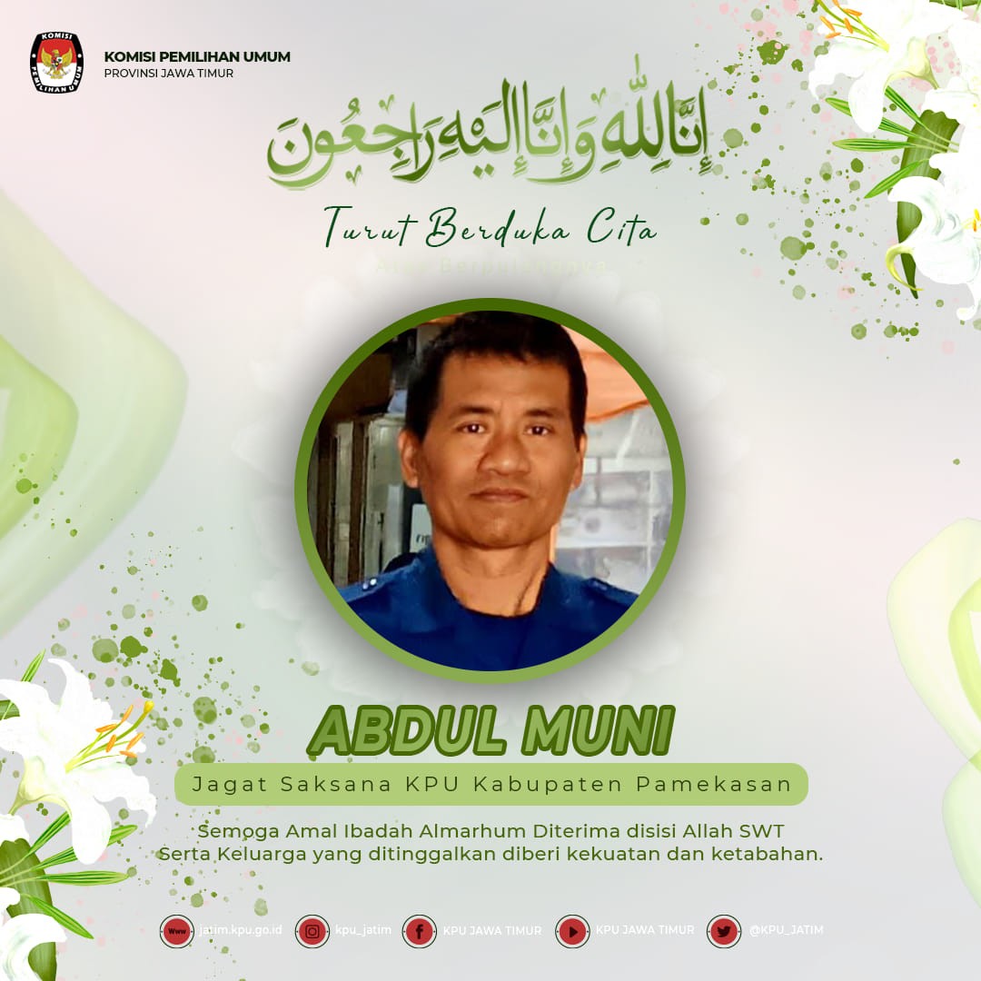 Sumenep,kab-sumenep.kpu.go.id-. Seluruh jajaran Komisi Pemilihan Umum (KPU) Kabupaten Sumenep mengucapkan bela sungkawa yang sedalam dalamnya atas meninggalnya Abdul Muni anggota jagat saksana KPU Kabupaten Pamekasan yang meningal saat mengikuti Diklat Jagat Saksana di SPN Lido Bogor. (Minggu 6 November 2022). (Kontributor : Heru/Editor: Heru/ATH / foto: Farid).