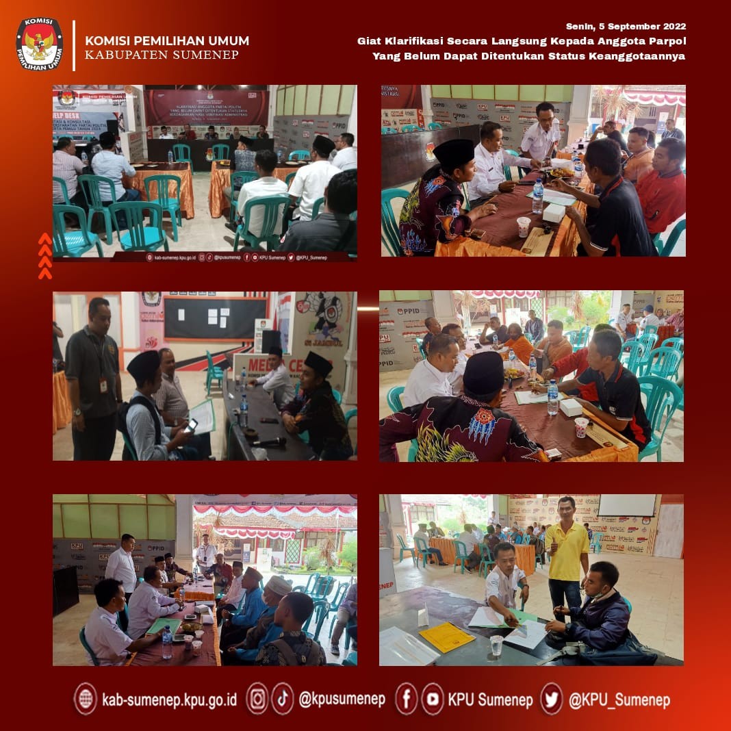 Rahbini Komisioner Divisi Teknis Penyelenggaraan Pemilu KPU Sumenep menyampaikan "Dari total 6 (enam) orang anggota yang dihadirkan, seluruhnya dapat menunjukkan KTA dan KTP-el dan saat dilakukan klarifikasi secara langsung, dengan tegas menyatakan bahwa anggota yang bersangkutan benar-benar menjadi anggota Parpol tersebut", tuturnya.