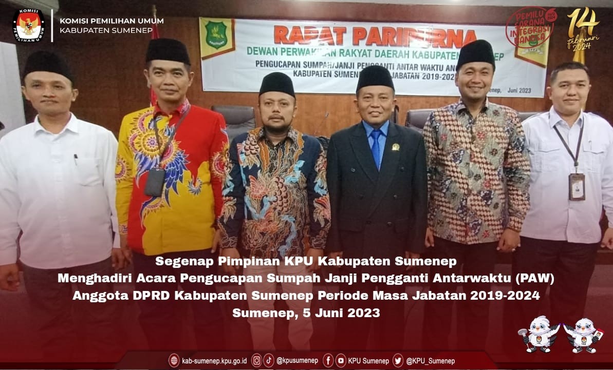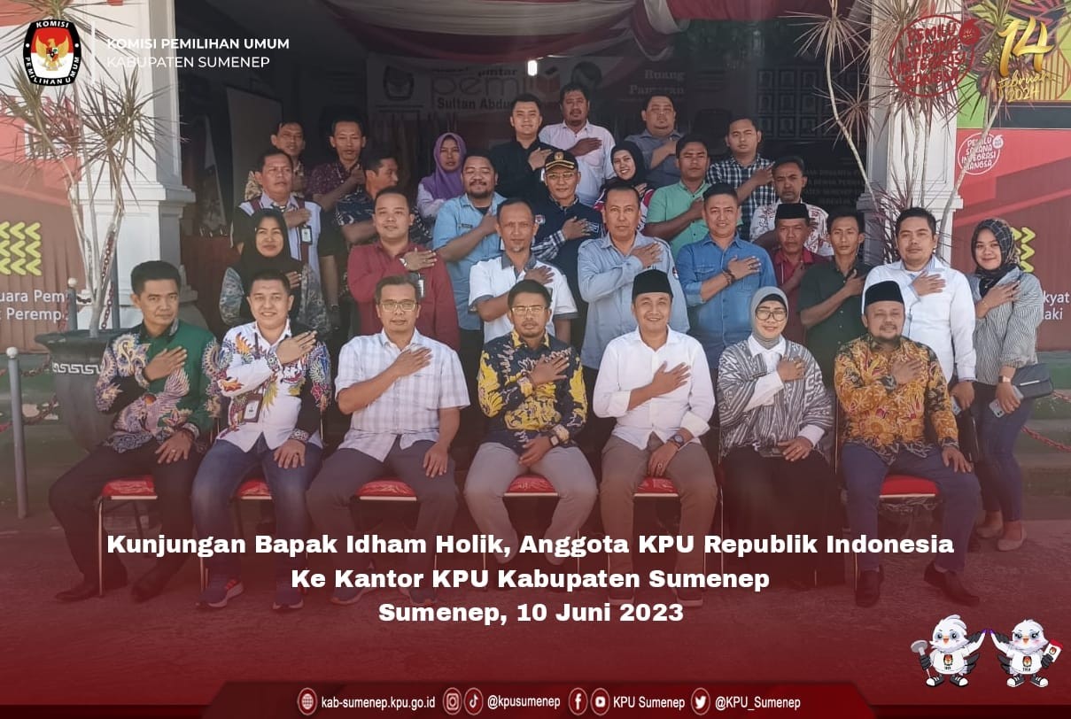 Sumenep,kab-sumenep.kpu.go.id-. Untuk kali kedua Komisi Pemilihan Umum (KPU) Kabupaten Sumenep menerima kunjungan dari Jajaran Komisioner Komisi Pemilihan Umum Republik Indonesia (KPU RI). Kali ini Idham Holik Komisioner KPU RI sebagai koordinator Divisi Teknis Penyelenggaraan Pemilu berkunjung ke KPU Kabupaten Sumenep. Setelah beberapa waktu yang lalu atau tepatnya tanggal 31 Oktober tahun 2020, Ilham Saputra selaku komisioner KPU RI Divisi SDM berkunjung ke Kabupaten di ujung timur pulau Madura ini dalam rangka simulasi pemungutan dan penghitungan suara dimasa pandemi Corona Virus Disease (Covid-19) untuk Pada Pemilihan Umum Bupati dan Wakil Bupati Sumenep tahun 2020,. Sabtu (10 Juni 2023). Idham Holik yang didampingi oleh Insan Qoriawan, salah satu komisioner KPU Provinsi Jawa Timur beserta rombongan diterima langsung oleh Rahbini, selaku ketua KPU Kabupaten Sumenep beserta seluruh komisioner serta seluruh jajaran sekretariat KPU Kabupaten Sumenep. sebelum memberikan arahan, Idham beserta rombongan singgah sejenak di ruangan ketua KPU Sumenep. Dalam sambutannya Rahbini Ketua KPU Kabupaten Sumenep menyampaikan bahwa Kabupaten Sumenep merupakan salah satu miniatur Indonesia karena memiliki wilayah yang terdiri dari 126 pulau, dimana 48 pulau yang berpenghuni dan 78 pulau yang tidak berpenghuni. Pada kesempatan kali ini Rahbini juga menyampaikan bahwa pelaksanaan tahapan Pemilu di Sumenep sampai dengan saat ini berjalan dengan lancar. “Terkait infrastruktur, saat ini kami sedang melakukan perbaikan gudang logistik,” tutup Rahbini. Idham Holik dalam pengarahannya menyampaikan bahwa sebagai lembaga layanan, KPU harus bisa melayani masyarakat dengan baik, memperbaiki kompetensi komunikasi publik sehingga kepercayaan publik nantinya akan tumbuh dan pada akhirnya partisipasi masyarakat dalam Pemilu akan meningkat. “Selalu memperbaiki diri, berinovasi, kreatif dalam menyelesaikan permasalahan serta jangan mudah terbawa emosi dalam menerima kritik,” pesan Idham. Memasuki era big data, Idham berpesan agar ke depannya kita harus memandang bahwa semua dokumen itu penting dan harus diarsipkan dengan baik. Seluruh peristiwa penyelenggaraan Pemilu bisa dicatat dengan baik dengan basis data yang akurat. sehingga bisa menjadi catatan sejarah ke depannya. “KPU secara lembaga masih menjadi 3 besar lembaga yang dipercaya publik, kata kuncinya adalah keterbukaan merupakan salah satu prinsip penyelenggaraan Pemilu,” tutup Idham. Sebelum meninggalkan KPU Kabupaten Sumenep, Idham beserta rombogan berkesempatan untuk meninjau lokasi renovasi gudang KPU Kabupaten Sumenep. (Kontributor : Heru/Editor: Adi Tri H / foto: Kasman,Dadang).