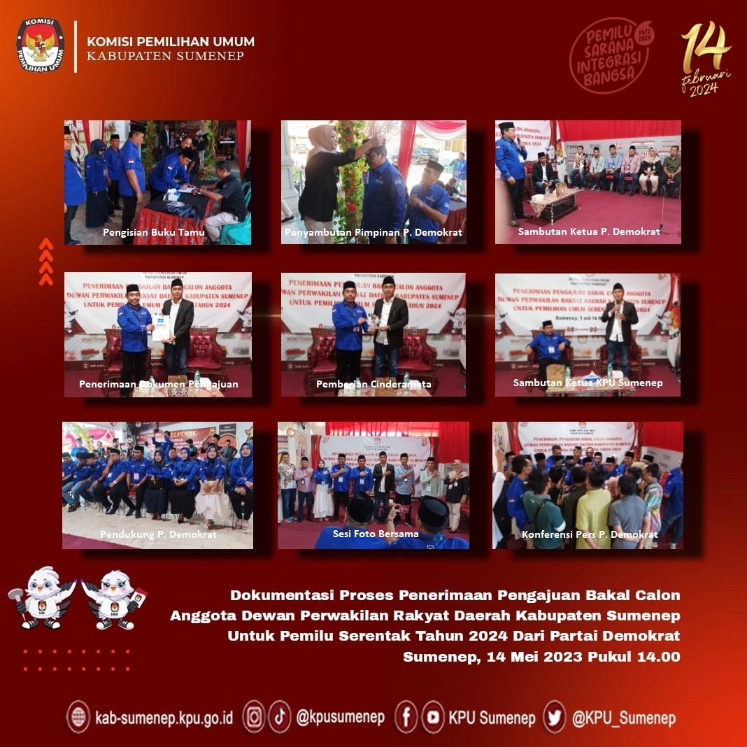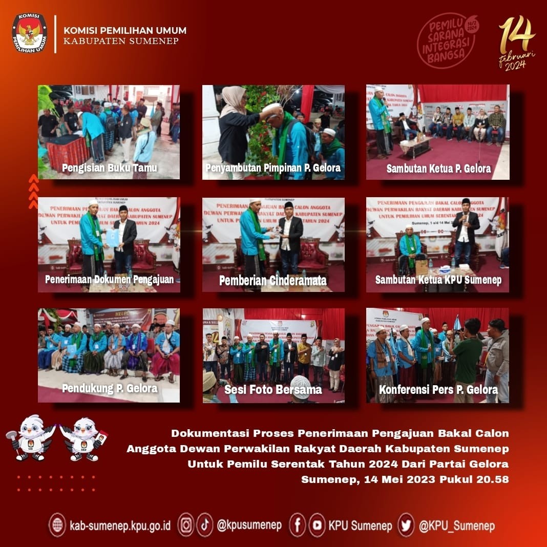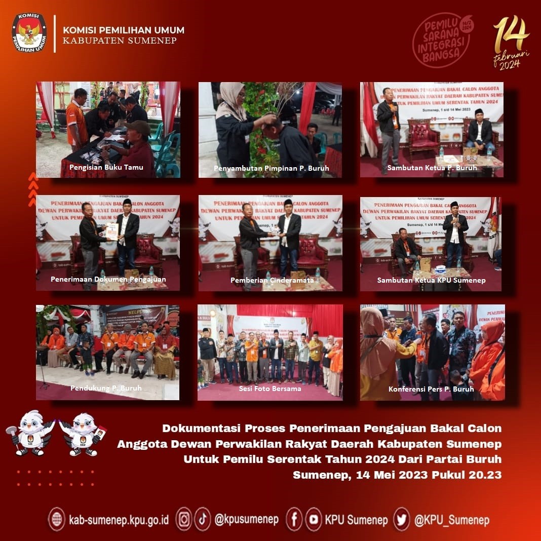 Sumenep,kab-sumenep.kpu.go.id-. Menjelang malam Partai Buruh yang dipimpin langsun oleh Gus Wahed menyambangi kantor Komisi Pemilihan Umum Kabupaten Sumenep. Seperti partai partai sebelumnya rombongan partai Buruh di sambut langsung oleh seluruh komisioner KPU Kabupaten Sumenep. Sebelum memasuki ruangan pendaftaran diawali dengan pengalungan tanda pengenal oleh Sekretaris KPU Kabupaten Sumenep. Minggu (14 Mei 2023). Setelah dipersilahkan menempati tempat yang telah disediakan, ketua partai Buruh diberi kesempatan untuk menyampaikan maksud dan tujuannya. Dalam sambutannya Gus Wahed menyampaikan bahwa tujuan kali ini adalah untuk menyerahkan berkas bacaleg yang diusung oleh partai Buruh. Gus Wahed juga mengucapkan terimakasih yang sebesarnya atas sambutan yang meriah ini. “Apabila nantinya ada kekurangan, kami partai Buruh siap untuk memperbaikinya,” tutup Gus Wahed. Dilanjutkan dengan penyerahan berkas dari pimpinan parpol dalam hal ini Gus Wahed kepada ketua KPU Kabupaten Sumenep dan selanjutnya penyerahan cindera mata maskot Pemilu tahun 2024 Sura Sulu dari ketua KPU Kabupaten Sumenep kepada pimpinan parpol. Seremonial berikutnya adalah sambutan ketua KPU Kabupaten Sumenep, Rahbini. Disampaikan oleh Rahbini bahwa KPU Kabupaten Sumenep sudah berusaha semaksimal mungkin dalam menyambut kedatangan seluruh parpol yang akan menyerahkan berkas pendaftaran termasuk partai Buruh. Selanjutnya berkas akan diperiksa oleh tim yang ada dan disaksikan oleh LO parpol. “Setelah dilakukan pengecekan berkas dari Partai Buruh ternyata masih ada berkas yang belum lengkap dan belum mengirimkan pengajuan melalui SILON untuk itu berkas dikembalikan dan parpol diberi kesempatan untuk memperbaiki hingga pukul 23.59 WIB,” jelas Deki Praseti Utama, Komisioner KPU Kabupaten Sumenep Divisi Teknis. (Kontributor : Heru/Editor: Adi Tri H / foto: Kasman).