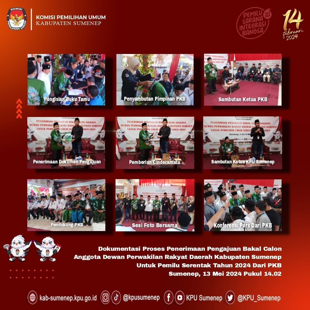 Sumenep,kab-sumenep.kpu.go.id-. Setelah Partai Bulan Bintang menyerahkan berkas, tidak berselang lama disusul kedatangan Partai Kebangkitan Bangsa. Rombongan PKB dipimpin langsung oleh ketua DPC PKB KH. Imam Hasyim. Rombongan dikawal oleh Dewan syuro, tanfidiyah serta para bacaleg. kedatangan kali ini dalam rangka mengantarkan bekas pendaftaran bacaleg dari PKB guna mengikuti perhelatan Pemilu 2024 nanti. Sabtu (13 Mei 2023). “Bahwa PKB telah melakukan proses yang cukup panjang dan akhirnya menyelesaikan tahapan pencalonan kali ini,” jelas KH. Imam Hasyim. Sesi selanjutnya adalah adalah penyerahan berkas dari pimpinan parpol kepada ketua KPU Kabupaten Sumenep dan penyerahan cindera mata maskot Pemilu tahun 2024 Sura Sulu dari ketua KPU Kabupaten Sumenep kepada pimpinan parpol. Ketua KPU Kabupaten Sumenep, Rahbini menyampaikan selamat datang kepada seluruh rombongan dari PKB Kabupaten Sumenep. Disampaikan juga bahwa setelah menerima berkas, maka akan dilanjutkan dengan pemeriksaan berkas oleh tim melalui aplikasi SILON. “Setelah dilakukan penelitian berkas melalui aplikasi SILON, berkas dari PKB dinyatakan lengkap dan diterima,” terang Rahbini. Di tutup dengan penyerahan tanda terima dari KPU Kabupaten Sumenep kepada petugas penghubung yang telah ditunjuk oleh partai politik. (Kontributor : Heru/Editor: Adi Tri H / foto: Kasman).