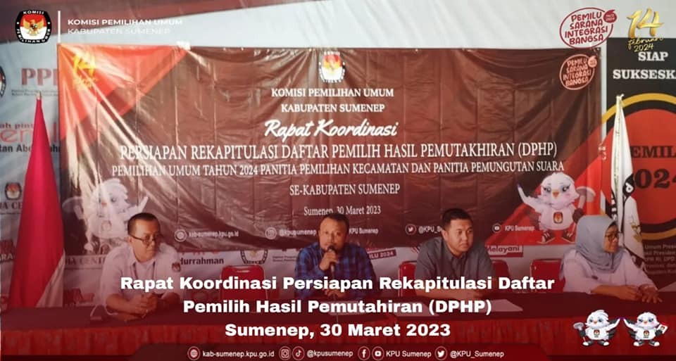 Sumenep,kab-sumenep.kpu.go.id-. Kegiatan apel pagi menjadi salah satu momen bagi pimpinan untuk mensuport bawahan atau staff yang ada di lingkungan kerjanya agar tetap memiliki semangat kerja, loyalitas,integritas, produktivitas serta moral kerja yang dibutuhkan oleh seluruh jajaran dalam pelaksanaan tugas dan fungsinya sebagai penyelenggara negara. Sebelum melaksanakan aktifitas, segenap jajaran sekretariat KPU Kabupaten Sumenep melaksanakan apel rutin senin pagi. Meskipun saat ini memasuki bulan suci ramadhan, akan tetapi tidak menyurutkan semangat seluruh staff KPU untuk mengikuti apel pagi. Adapun yang bertindak sebagai Pembina apel pagi kali ini adalah Kuswandi, Kasubbag Program dan Data KPU Kabupaten Sumenep. Senin (27 Maret 2023). Dalam kesempatan kali ini kuswandi berpesan kepada seluruh jajaran sekretariat agar tetap menjaga kesehatan, karena tahapan Pemilu disusun berdasarkan hari kalender. Dan seperti yang diketahui bahwa di minggu kemarin, tepatnya hari pertama puasa, KPU Kabupaten/ kota harus menghadiri kegiatan rakor di Surabaya yang diikuti oleh dua Divisi sekaligus, yaitu Divisi Teknis dan Divisi Program dan Data. “Terkait penyesuaian jam kerja selama bulan puasa, kita ikuti aturan yang telah ada,” terang Kuswandi. Dan yang terakhir Kuswandi juga berpesan dalam menyemarakkan bulan puasa ini diisi dengan kegiatan yang bisa meningkatkan amal ibadah agar mendapatkan pahala yang maksimal. (Kontributor : Heru/Editor: Adi Tri H / foto: Dadang).