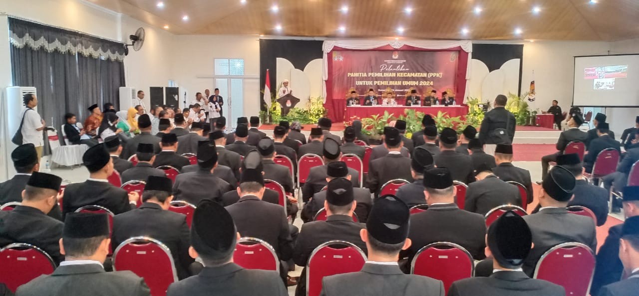 Sumenep, kab-sumenep.kpu.go.id - Pasca pelantikan anggota Panitia Pemilihan Kecamatan (PPK) kemarin (Rabu, 04/01/23) di Bupati Hall, Sumenep, KPU Sumenep langsung menggelar Bimbingan Teknis (Bimtek) yang juga melibatkan 135 (Seratus Tiga Puluh Lima) orang Anggota PPK. Bimtek yang digelar secara hybrid (Luring dan Daring) ini dilaksanakan di Hotel C1 Sumenep selama 2 (dua) hari pada tanggal 4 s/d 5 Januari 2023. Anggota PPK yang mengikuti bimtek secara daring yaitu anggota PPK Kecamatan Arjasa, Kangayan, dan Sapeken yang pada saat pelantikan juga mengikuti secara daring disebabkan karena kapal yang tidak bisa berlayar akibat cuaca yang sangat buruh di perairan Sumenep. Kegiatan ini dilaksanakan bertujuan untuk memberikan materi Orientasi Tugas (Ortug) tentang tahapan Pemilu 2024, tugas dan tanggung jawab PPK, kode etik penyelenggara Pemilu, serta tahapan Pemilu yang akan dilaksanakan oleh PPK dalam waktu dekat. Secara bergantian, Ketua dan seluruh anggota KPU Sumenep memberikan materinya sesuai dengan divisi masing-masing kepada seluruh peserta. Rahbini, Ketua KPU Sumenep juga mengingatkan kepada seluruh anggota PPK untuk segera melakukan rapat pleno di tingkat PPK dalam rangka memilih Ketua PPK. Beliau juga mengingatkan agar pasca bimtek, Ketua dan Anggota PPK segera berkoordinasi dengan Camat di Kecamatannya masing-masing untuk melakukan pengusulan Sekretaris dan Staf PPK untuk kemudian diusulkan kepada Pemerintah Kabupaten Sumenep dan ditetapkan dengan Keputusan Bupati Sumenep paling lama 7 (tujuh) hari setelah PPK dilantik. (kontr: Humas KPU Sumenep: Heru/ed: Heru/ATH/foto: Dadang L)