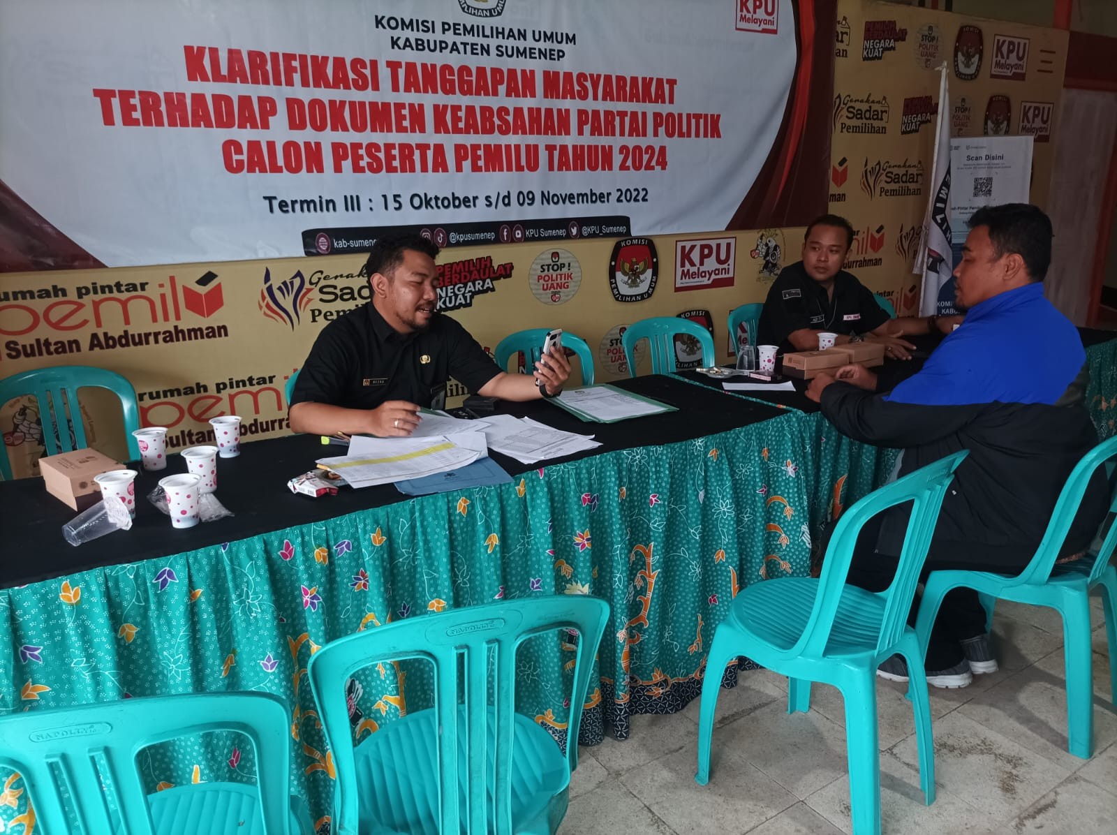 Sumenep,kab-sumenep.kpu.go.id-. Setelah beberapa waktu lalu, Komisi Pemilihan Umum (KPU) Kabupaten Sumenep melakukan talk show bekerjasama dengan salah satu radio swasta, kali ini KPU Sumenep kembali melakukan dialog interaktif dengan menggandeng Radio Republik Indonesia (RRI) Pro 1 FM guna melakukan Sosialisasi Penggunaan Aplikasi SIAKBA pada tahapan pembentukan badan adhoc Pemilu tahun 2024 mendatang.( Kamis, 10 November 2024). Bertindak sebagai pemandu acara kali ini dari RRI yaitu Ririn Riskiyanti sedangkan narasumber dari KPU Sumenep yaitu Rafiqi, Komisioner KPU Sumenep bidang SDM dan Parmas. Disampaikan kembali oleh Rafiqi bahwa SIAKBA merupakan system informasi yang baru diluncurkan oleh KPU RI beberapa waktu lalu yang merupakan sistem informasi khusus KPU yang akan digunakan dalam rekruitmen anggota KPU RI, KPU Provinsi, KPU Kabupaten/kota sampai nanti rekruitmen tenaga adhoc PPK dan PPS. Aplikasi ini memiliki menu menu yang sangat mudah. Pelamar tinggal menyiapkan alamat e-mail yang aktif, no HP, NIK, serta no KK. Rafiqi juga menyampaikan bahwa SIAKBA ini berbasis web jadi masyarakat tidak perlu mendownload. Rafiqi juga menyinggung kembali terkait jumlah badan adhoc nantinya sangatlah besar, mulai dari PPK, PPS, KPPS, petugas pemutakhiran data pemilih, petugas linmas di masing masing TPS, serta kesekretariatan di tingkat PPK dan PPS, jumlahnya sekitar 40 ribu lebih yang akan terlibat. “ Salah satu asas KPU adalah asas tertib administrasi, hal itulah yang menjadi dasar dibuatnya aplikasi SIAKBA,” jelas Rafiqi. Terkait periodeisasi petugas badan adhoc, Rafiqi menyampaikan bahwa untuk Pemilu kali ini sudah tidak berlaku lagi. Mengenai pengumpulan berkas Hard Copy, disampaikan bahwa berkas tersebut dibawa pada saat pelaksanaan tes tulis. Karena nantinya berkas tersebut juga diperlukan pada proses wawancara. Jadi tidak perlu diserahkan di awal. Ada penanya dari Kangean yaitu Siti Romlah terkait daerah yang tidak ada jaringan internet. Dijawab oleh rafiqi bahwa solusinya pendaftar mungkin bisa bergeser ke tempat yang ada jaringan internetnya, atau bisa ke kantor kecamatan terdekat. Nanti KPU juga akan berkoordinasi dengan para Camat untuk bisa memfasilitasi akses internet di kantor kecamatan. Atau bisa bergeser ke kantor KPU, akan tetapi tetap nantinya pelamar akan diarahkan mendaftar mandiri ke aplikasi SIAKBA tersebut. Ada penanya terakhir melalui WhatsApp terkait honor yang nantinya diterima baik PPK maupun PPS. “Sesuai dengan peraturan menteri keuangan, kisaran honor yang akan diterima oleh ketua PPK sekitar Dua juta lima ratus ribu rupiah, sedangkan untuk ketua PPS di kisaran satu suta lima ratus ribu rupiah,” tutup Rafiqi. (Kontributor : Heru/Editor: Heru/ATH / foto: Kasman).