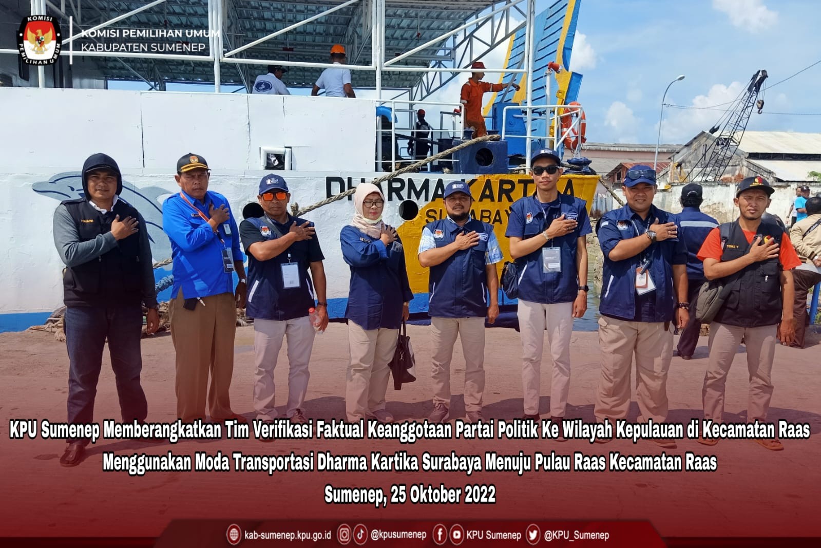 Sumenep, kab-sumenep.kpu.go.id - Pada tahapan verifikasi faktual keanggotaan parpol calon peserta pemilu 2024 saat ini, KPU Sumenep kembali memberangkatkan tim verifikator untuk berlayar menuju pulau Raas di Kecamatan Raas, Sumenep, Jawa Timur.