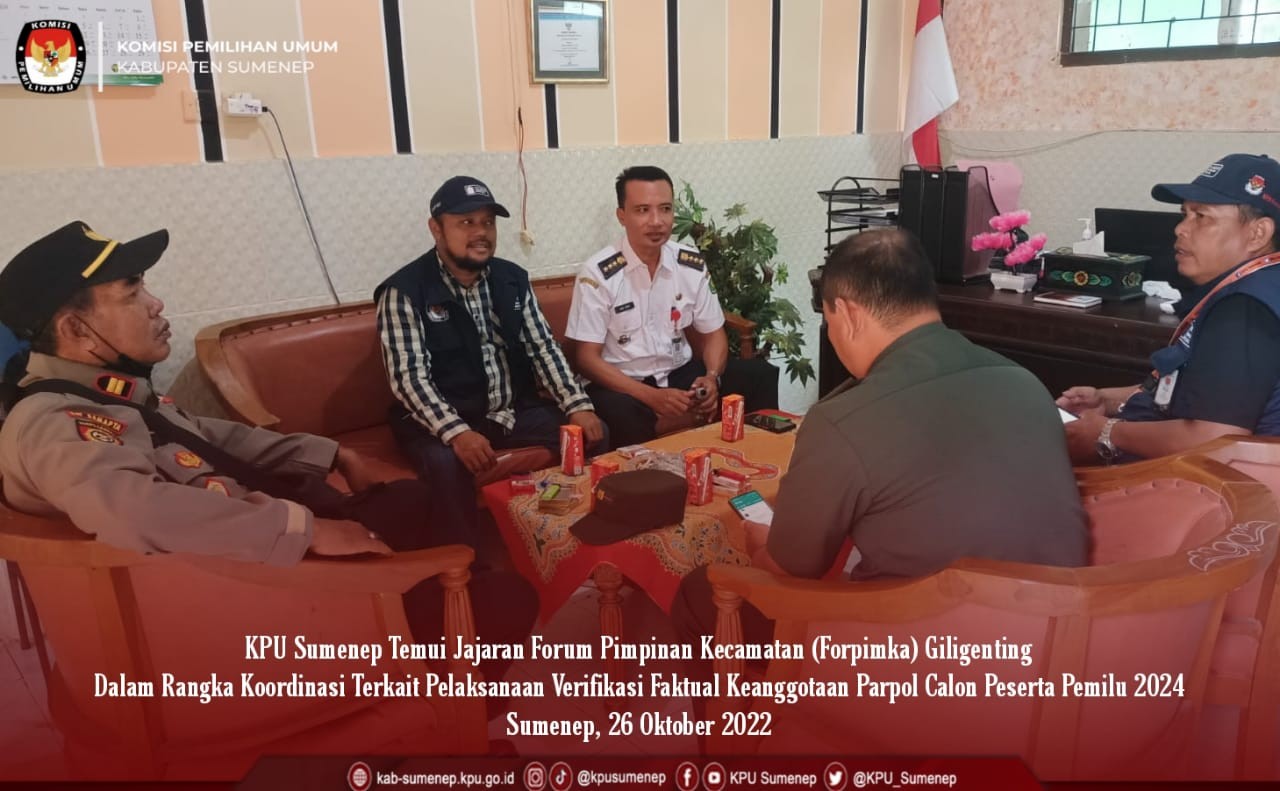 Pada hari yang sama pula, KPU Sumenep melaksanakan bimbingan teknis kepada petugas verifikator eksternal untuk melaksanakan verifikasi faktual di pulau Sapudi yang terdiri dari 2 kecamatan yakni kecamatan Gayam, dan kecamatan Nonggunong. (baca berita terkait: https://kab-sumenep.kpu.go.id/berita/baca/8019/kpu-sumenep-angkat-petugas-verifikator-eksternal-untuk-tuntaskan-tahapan-verifikasi-faktual)