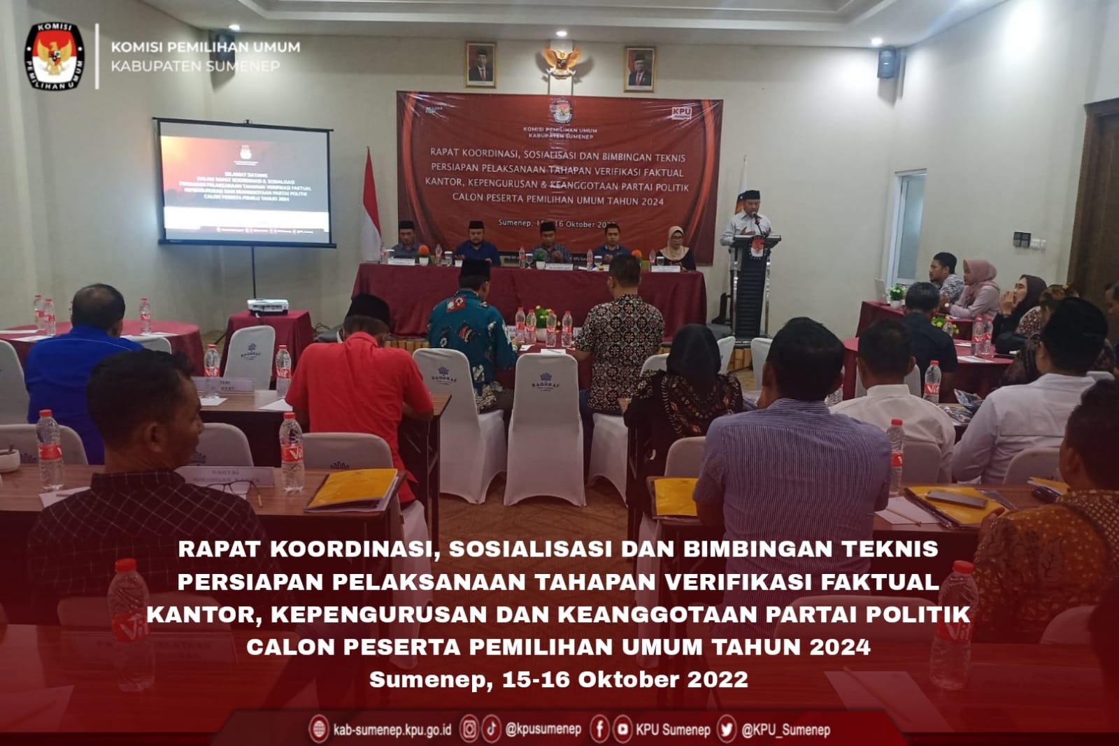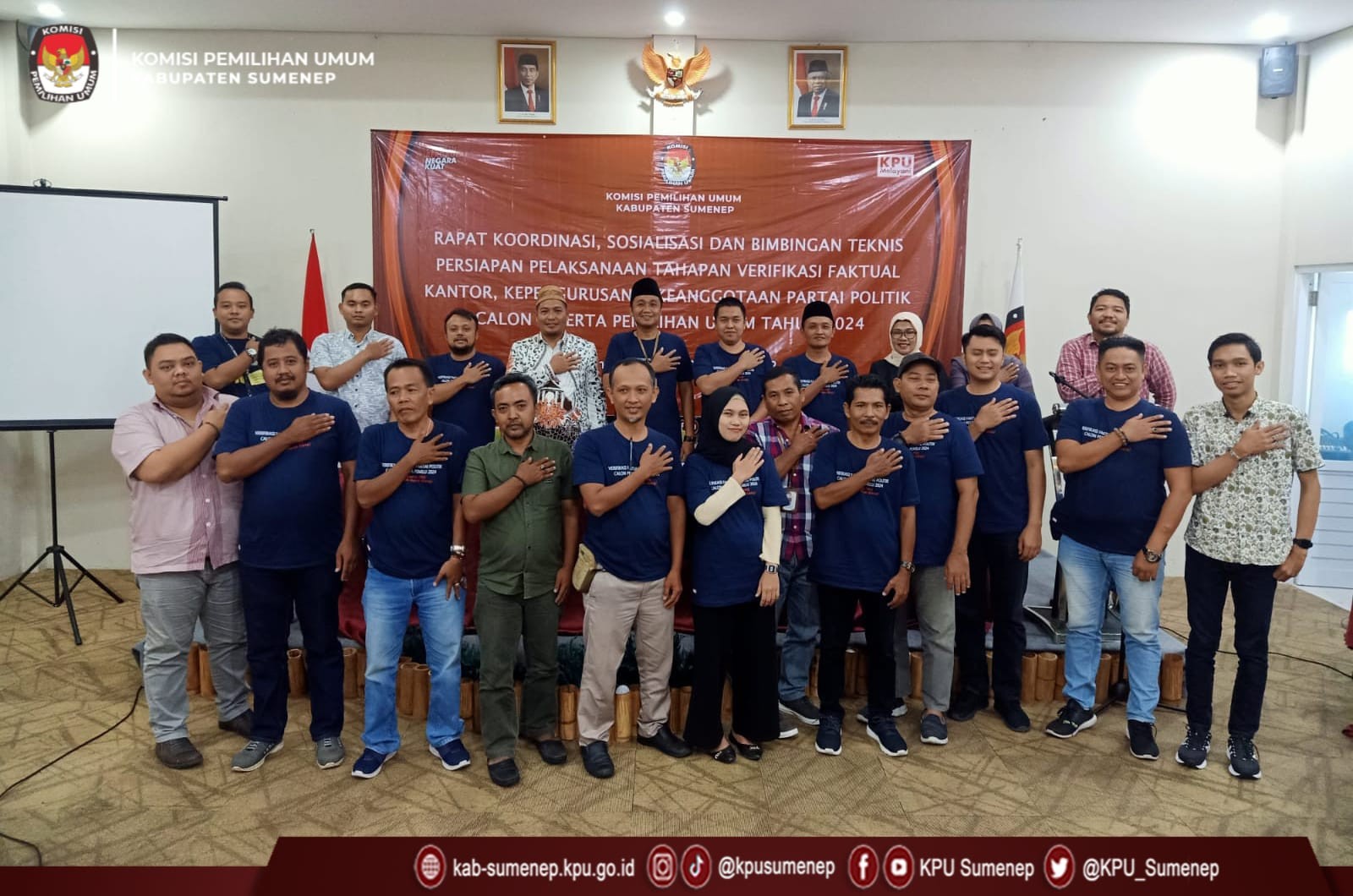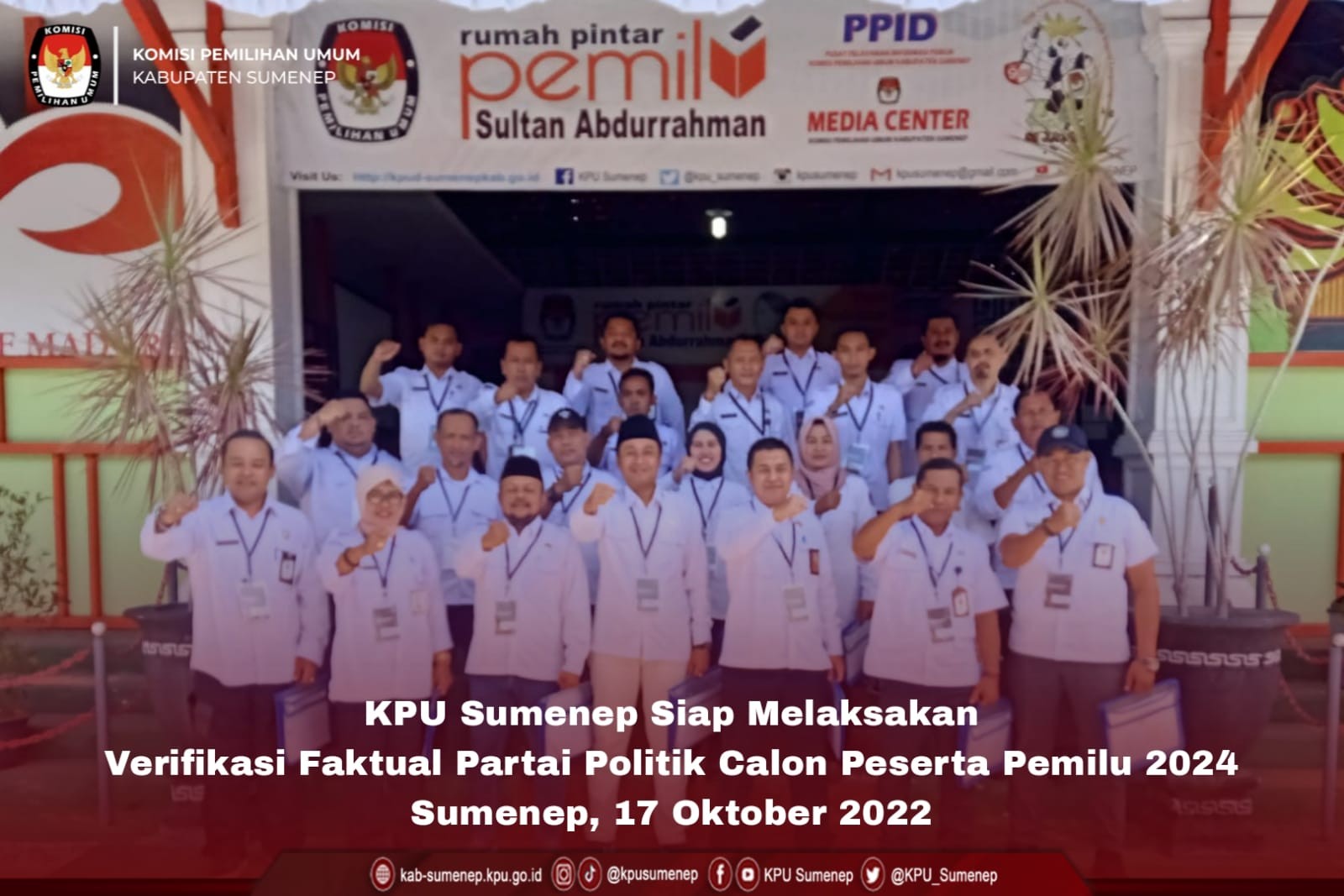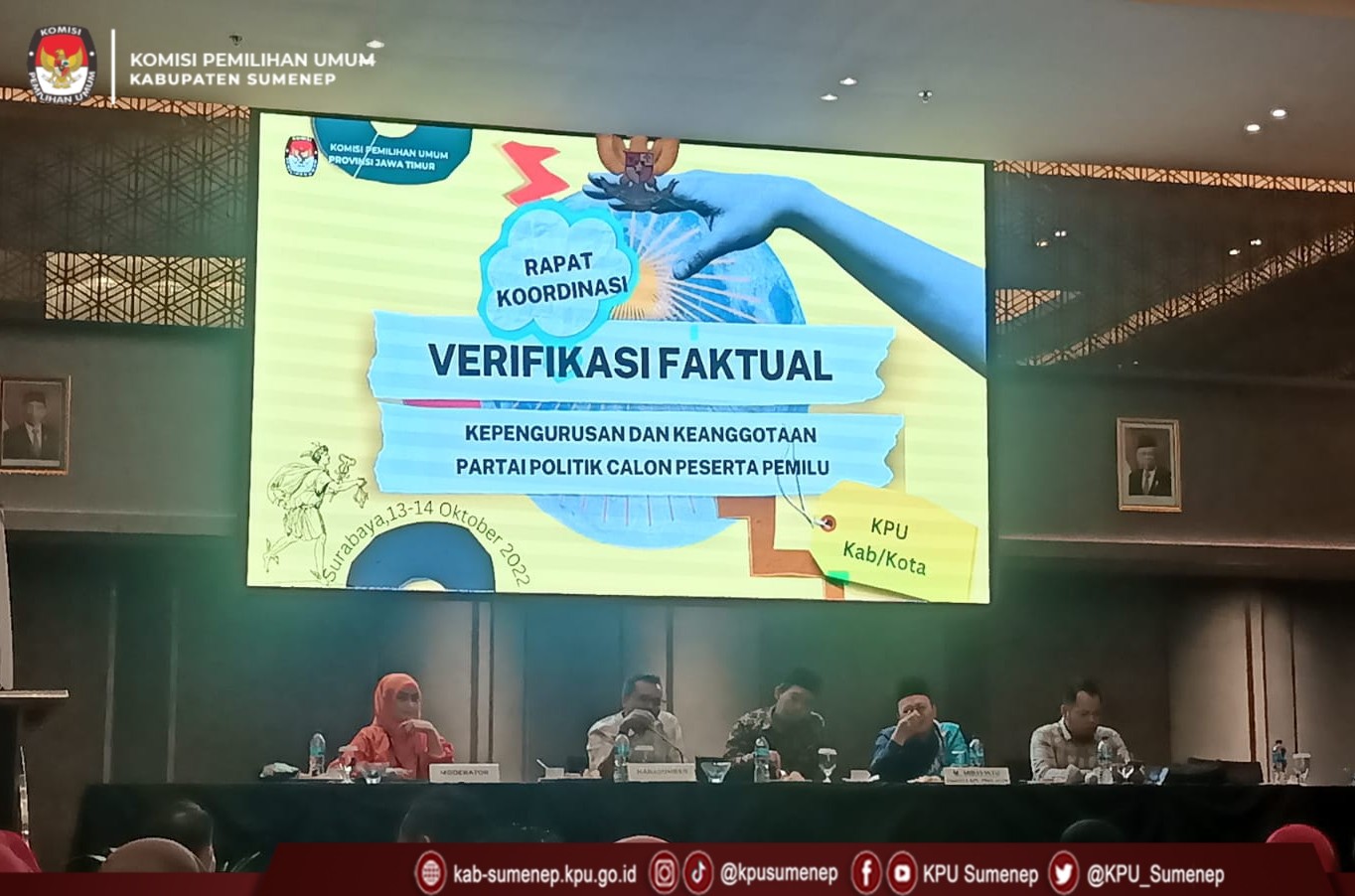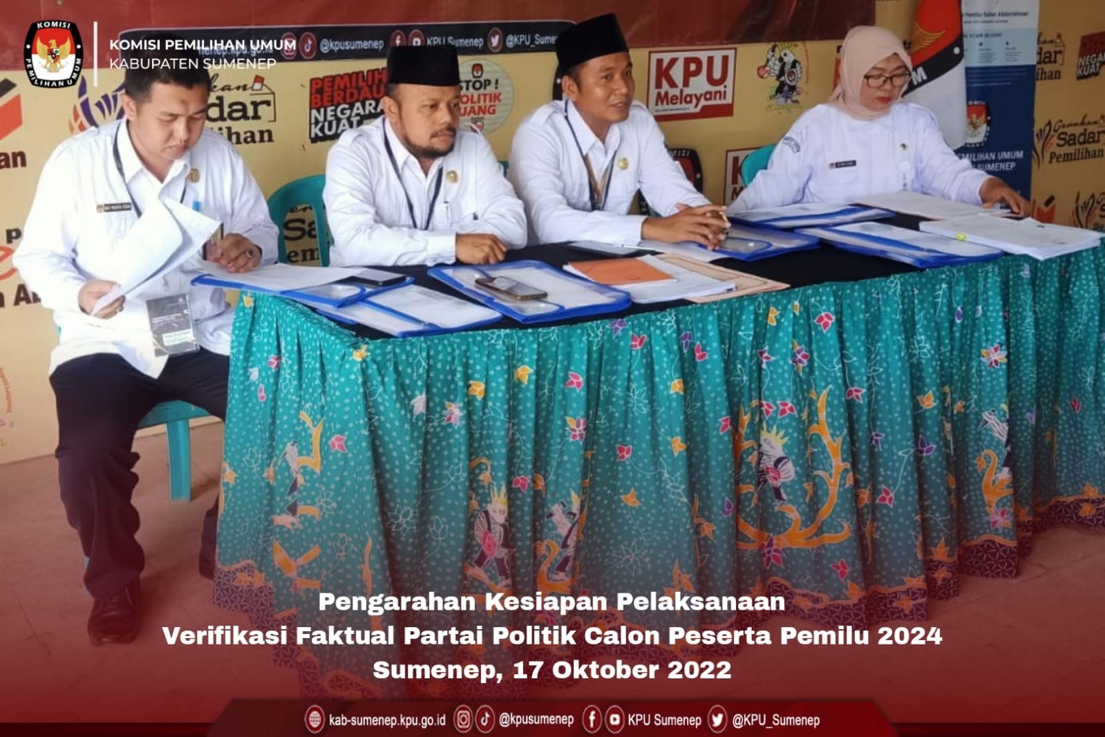 Sumenep,kab-sumenep.kpu.go.id-. Sesuai dengan jadwal yang telah disusun, Komisi Pemilihan Umum (KPU) Kabupaten Sumenep telah menyelesaikan verifikasi aktual kepengurusan, keterwakilan perempuan dan domisili kantor terhadap 6 partai politik calon peserta Pemilu non parlemen maupun Parpol baru. (Senin, 17 Oktober 2024). Keenam partai tersebut adalah Partai Bulan Bintang (PBB), Partai Buruh, Partai Garda Perubahan Indonesia (GARUDA), Partai Gelombang Rakyat Indonesia (GELORA), Partai Hati Nurani Rakyat (HANURA) dan Partai Kebangkitan Nusantara (PKN). Rahbini, Plt. Ketua KPU Sumenep menyatakan bahwa pelaksanaan vertual kali ini secara umum berjalan lancar dikarenakan sebelum turun ke lapangan dilakukan bimbingan teknis kepada seluruh petugas yang ada. “Hari ini sebenarnya bukan hanya vertual kepengurusan saja yang dilakukan, akan tetapi tim dibawah juga melaksanakan vertual keanggotaan terhadap 9 parpol non parlemen maupun parpol baru,” terang Rahbini. Adapun sisanya 3 partai politik akan dilakukan verifikasi faktual pada hari berikutnya (Selasa 18 Oktober 2022). (Kontributor : Heru/Editor: Heru,ATH / foto: Farid).
