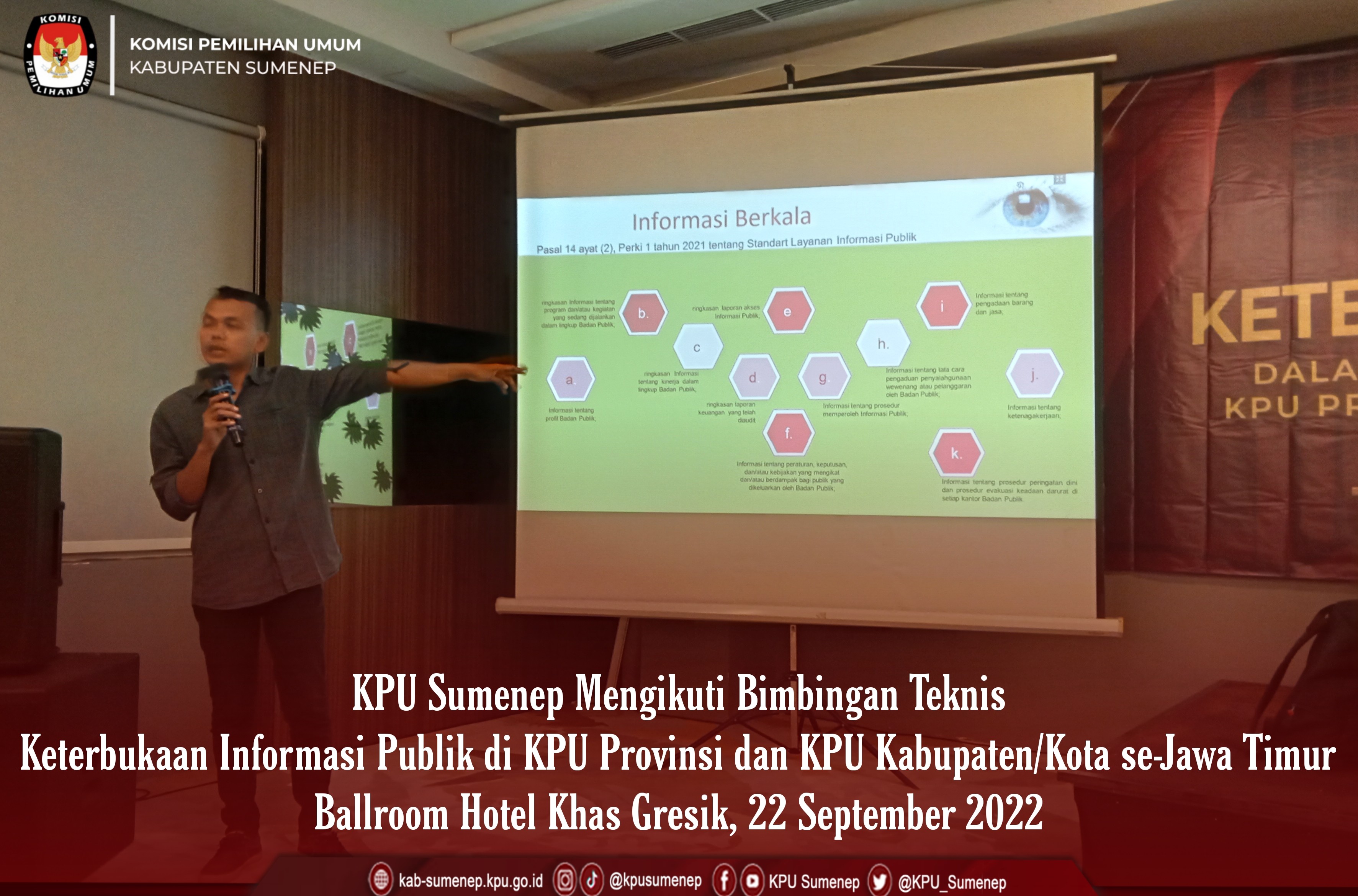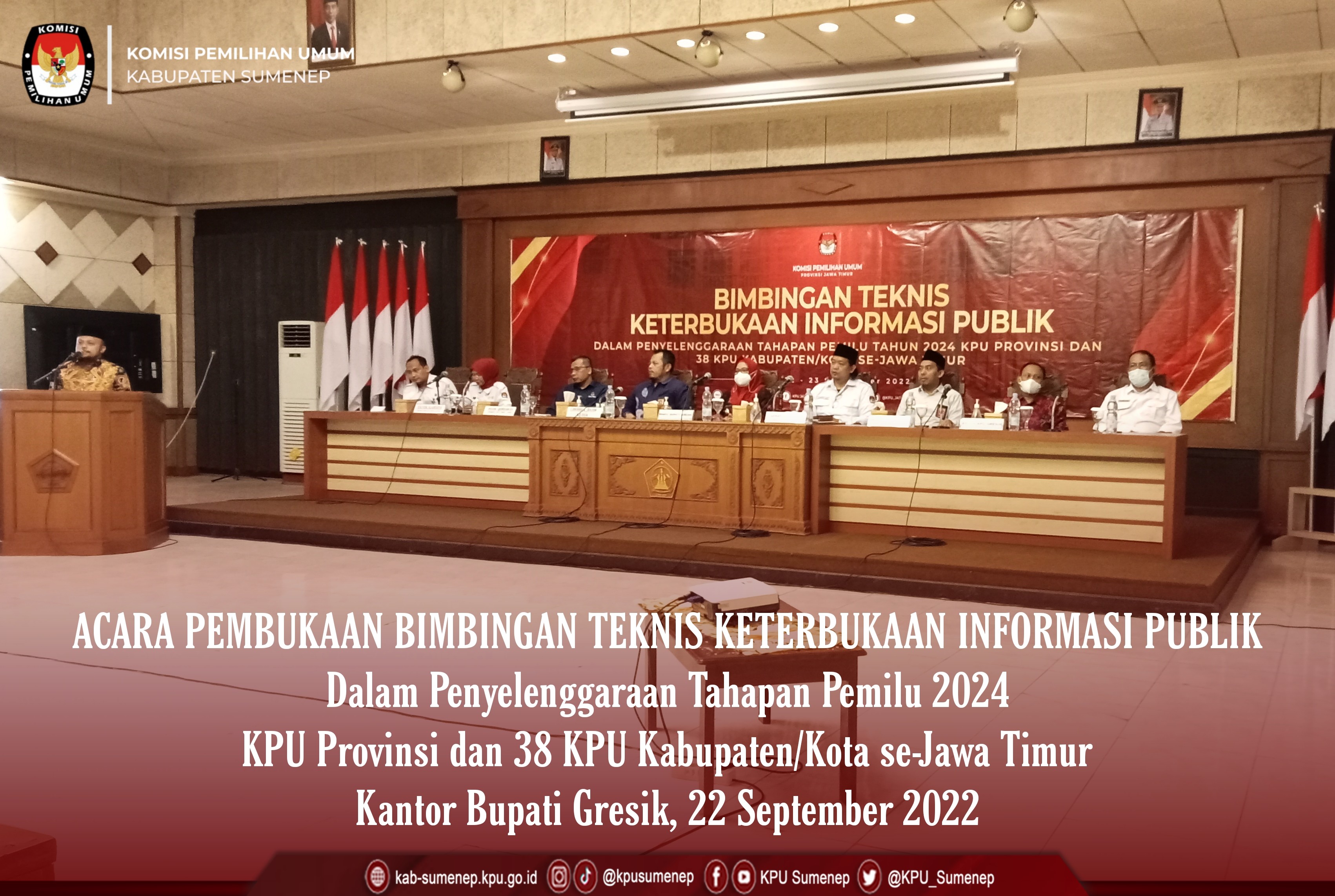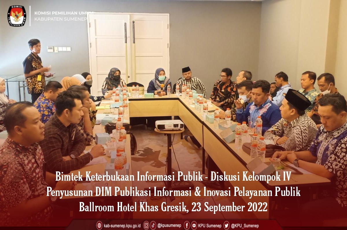 Gresik, kab-sumenep.kpu.go.id - Dalam rangka meningkatkan keterbukaan informasi publik di lingkungan KPU Provinsi dan KPU Kabupaten/Kota se-Jawa Timur, KPU Jatim menyelenggarakan Kegiatan Bimtek Keterbukaan Informasi Publik dengan mengundang Anggota Divisi SDM & Parmas beserta Kassubbag TekMas di 38 Kabupaten/Kota di Jawa Timur di Kabupaten Gresik.