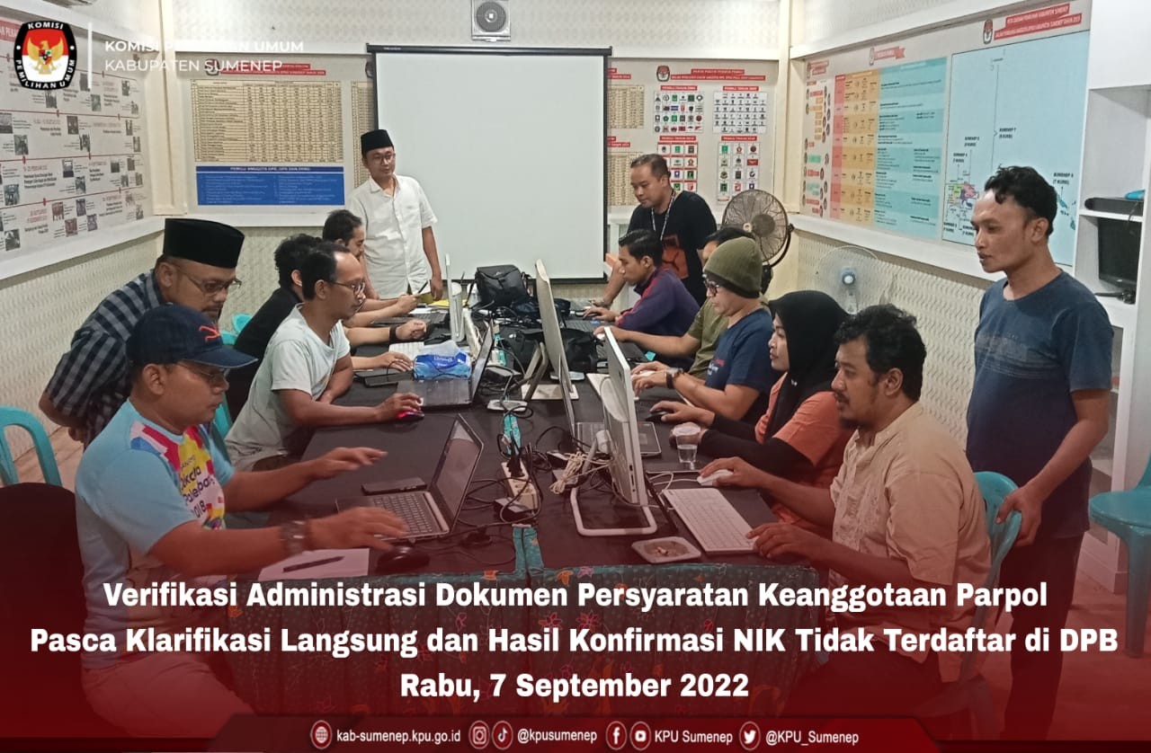 Sumenep, kab-sumenep.kpu.go.id - Masa verifikasi administrasi terhadap dokumen persyaratan keanggotaan parpol hampir berakhir, dan pada saat ini (rabu, 07/09/2022) KPU Sumenep sedang melakukan proses penyusunan hasil verifikasi administrasi di SIPOL. Sebelum hasil verifikasi administrasi tersebut dituangkan dalam berita acara, masih ada 1 (satu) proses lagi yang harus dilakukan yaitu melakukan penentuan status akhir terhadap anggota parpol yang terindikasi NIK tidak terdaftar dalam Daftar Pemilih Berkelanjutan (DPB). Disaat proses verifikasi administrasi dokumen persyaratan keanggotaan parpol sebelumnya, masih terdapat anggota parpol yang terindikasi NIK tidak terdaftar dalam DPB, sehingga penentuan status keanggotaannya menunggu hasil konfirmasi KPU Republik Indonesia ke Kementrian yang menyelenggarakan urusan pemerintahan di bidang dalam negeri (Kemendagri). Pada saat ini admin SIPOL KPU Republik Indonesia sedang dalam proses mengunggah dokumen ke SIPOL terkait hasil konfirmasi KPU Republik Indonesia ke Kemendagri. Setelah proses unggah dokumen dimaksud selesai, KPU Sumenep kemudian akan melakukan pengecekan terhadap dokumen pembuktian untuk keanggotaan yang dinyatakan belum memenuhi syarat karena NIK tidak terdaftar pada DPB. "KPU Sumenep akan melakukan pengecekan terhadap dokumen pembuktian hasil konfirmasi dimaksud, jika NIK anggota dimaksud terdaftar pada data yang dimiliki oleh Kemendagri, maka indikator keabsahaannya akan dinyatakan sesuai dan status keanggotaannya akan menjadi memenuhi syarat (MS)", tutur Rahbini, Komisioner Divisi Teknis Penyelenggaraan Pemilu KPU Sumenep. "Apabila NIK anggota dimaksud tidak terdaftar pada data yang dimiliki oleh Kemendagri, maka indikator keabsahaannya akan dinyatakan tidak sesuai dan status keanggotaannya akan menjadi tidak memenuhi syarat (TMS)", pungkasnya. (Humas KPU Sumenep/ed:Heru,Rezha,ATH/foto:ATH)