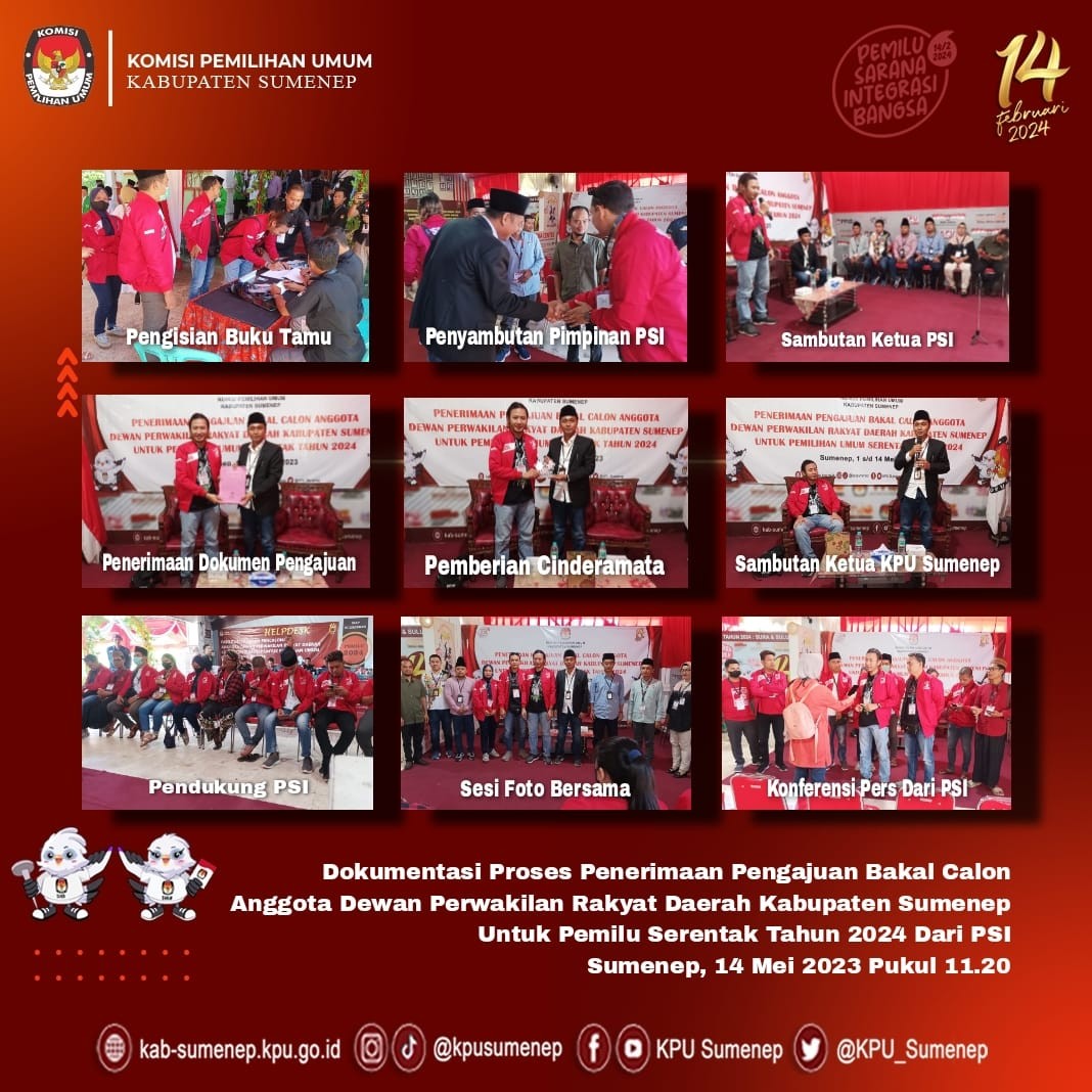 Sumenep,kab-sumenep.kpu.go.id-. Di urutan berikutnya setelah PPP giliran Partai Solidaritas Indonesia melakukan penyerahan pengajuan bakal calon anggota legislatifnya ke kantor Komisi Pemilihan Umum (KPU) Kabupaten Sumenep. Rombongan PSI dipimpin oleh ketuanya yaitu Sutam Pandu Kuncoro. Disampiakan oleh Sutam dalam sambutannya bahwa setelah melewati masa masa berat akhirnya PSI bisa menyelesaikan satu tahapan lagi yaitu pencalonan anggotanya yang akan bertarung di Pemilu tahun 2024 mendatang. Minggu (14 Mei 2023).