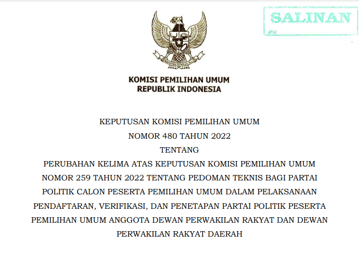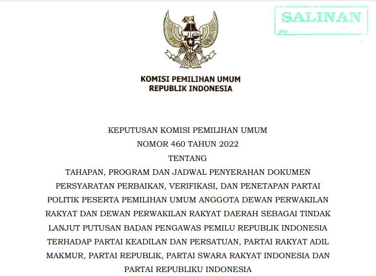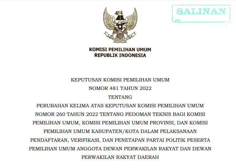 Rafiqi menyampaikan bahwa penetapan partai politik sebagai peserta pemilu 2024 akan dilaksanakan pada 14 Desember 2022 mendatang.