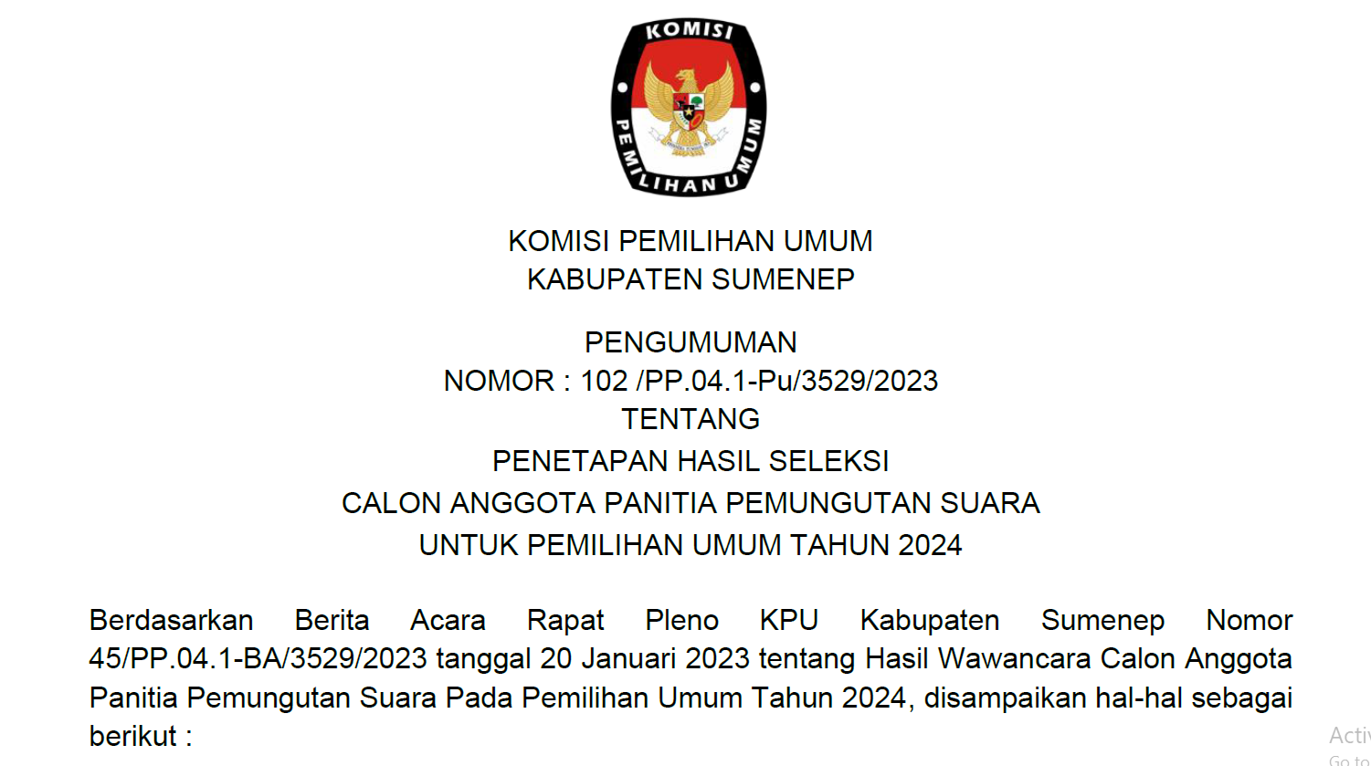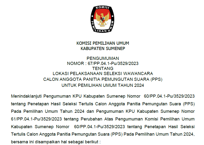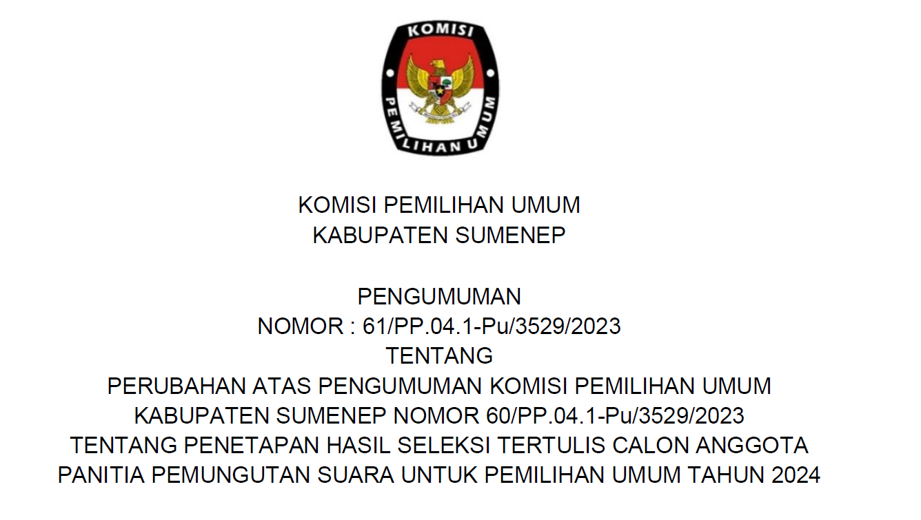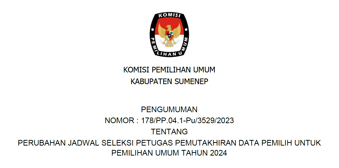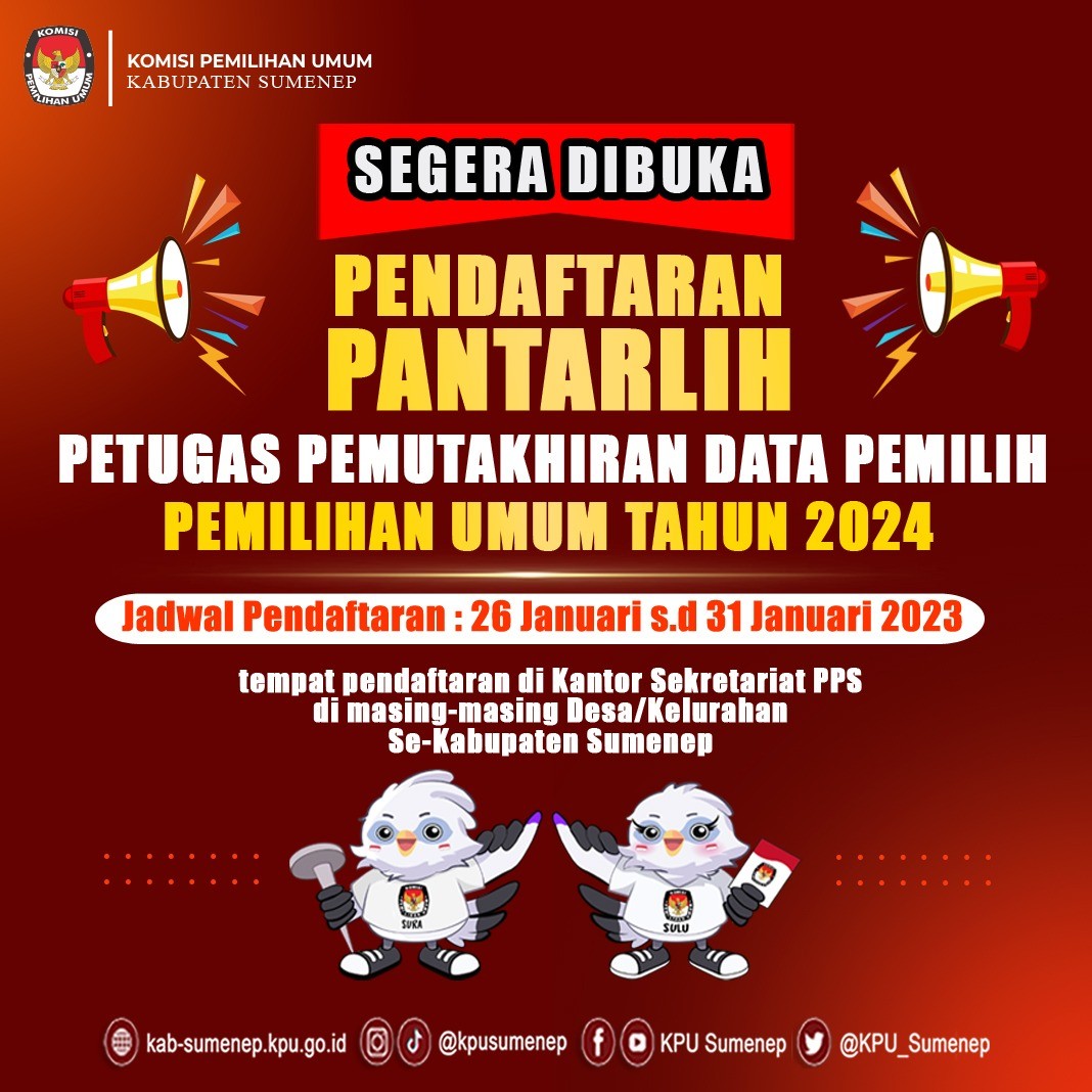 Sumenep, kab-sumenep.kpu.go.id - Mari ikut berpartisipasi dalam Pemilihan Umum tahun 2024 dengan mendaftar sebagai Petugas Pemutakhiran Data Pemilih (Pantarlih).