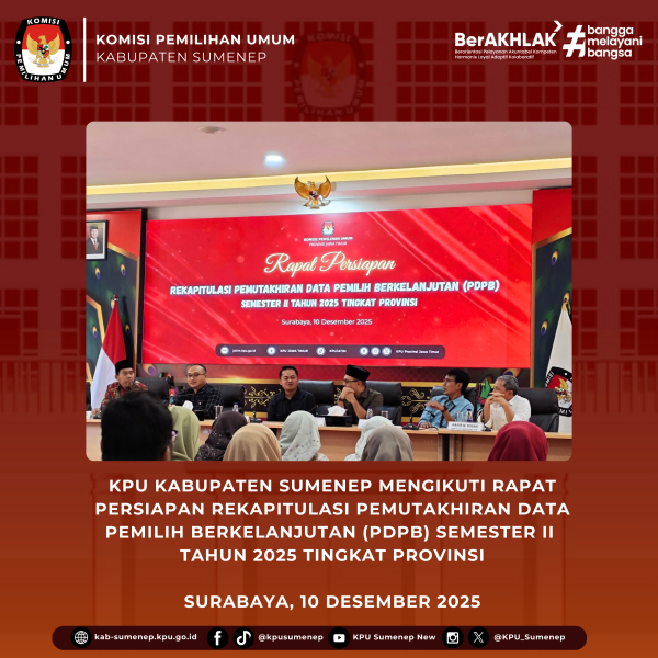 Sumenep, kab-sumenep.kpu.go.id — Komisi Pemilihan Umum (KPU) Kabupaten Sumenep mengikuti kegiatan Koordinasi dan Pembinaan Teknis Analisis serta Penyiapan Persidangan di Lingkungan Sekretariat KPU Provinsi dan Kabupaten/Kota se-Jawa Timur yang diselenggarakan secara daring oleh KPU Provinsi Jawa Timur pada hari Rabu, 12 November 2025. Kegiatan ini dibuka oleh Sekretaris KPU Provinsi Jawa Timur, Nanik Karsini, dan dipandu oleh Yuliana Dewi, Kepala Bagian Teknis dan Hukum KPU Jawa Timur.